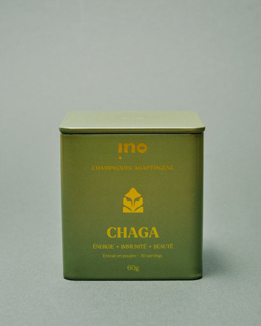 Ino résonne avec la puissance du Chaga (Inonotus obliquus) —le roi des champignons et notre petit chouchou. C’est aussi la déesse grecque des mers calmes, symbole de tranquillité et d'équilibre. On aurait pas pu trouvé meilleur nom !