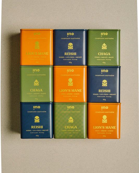 Chez Ino, nous sommes convaincus du potentiel des champignons médicinaux —ces anciens remèdes plus que jamais adaptés à nos vies modernes. Ils agissent en tant que régulateurs naturels aidant à atteindre un état d’homéostasie et d'harmonie entre corps, émotions & esprit.